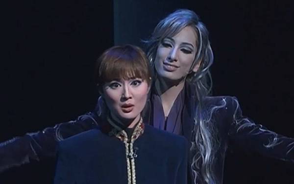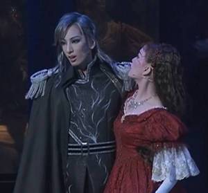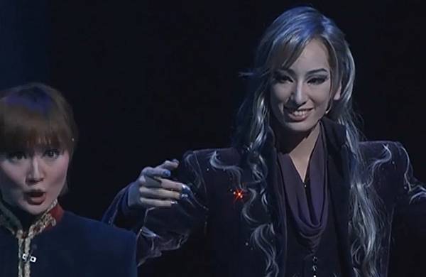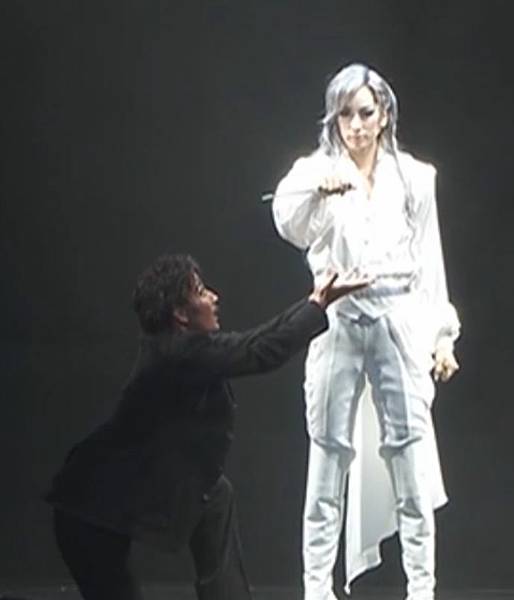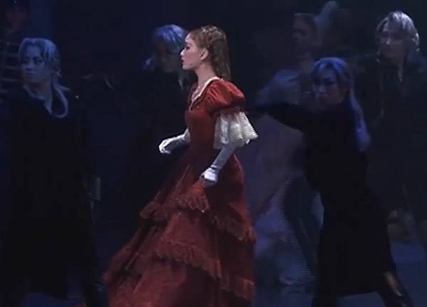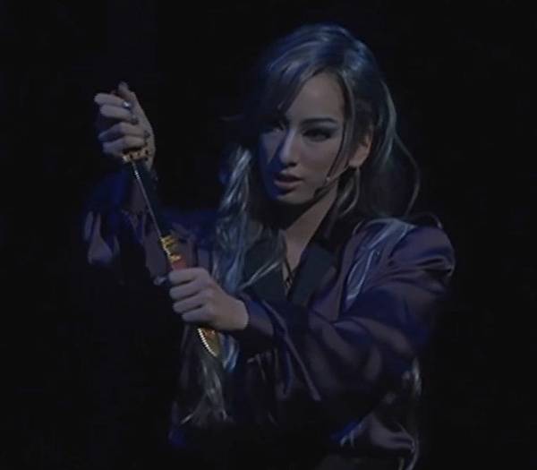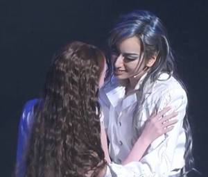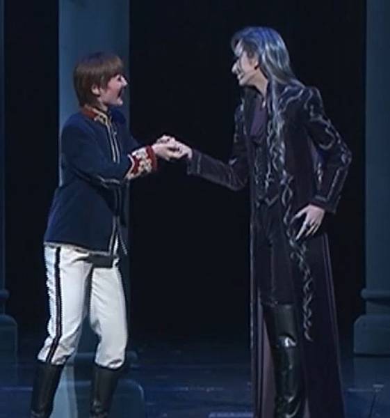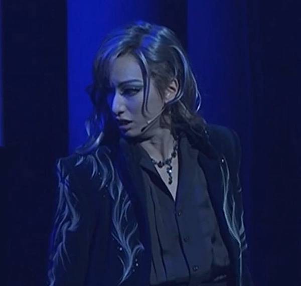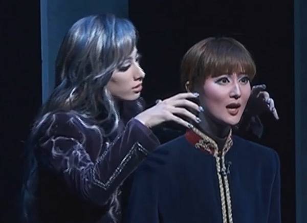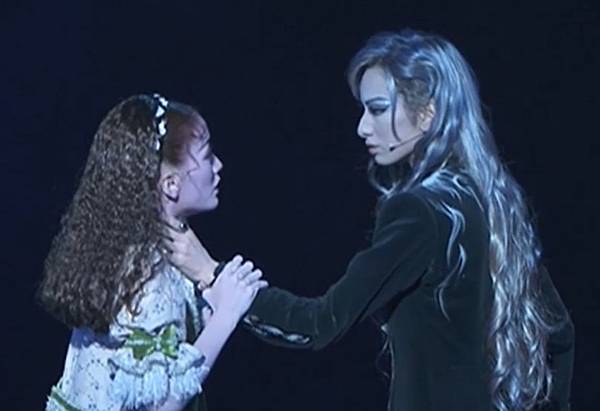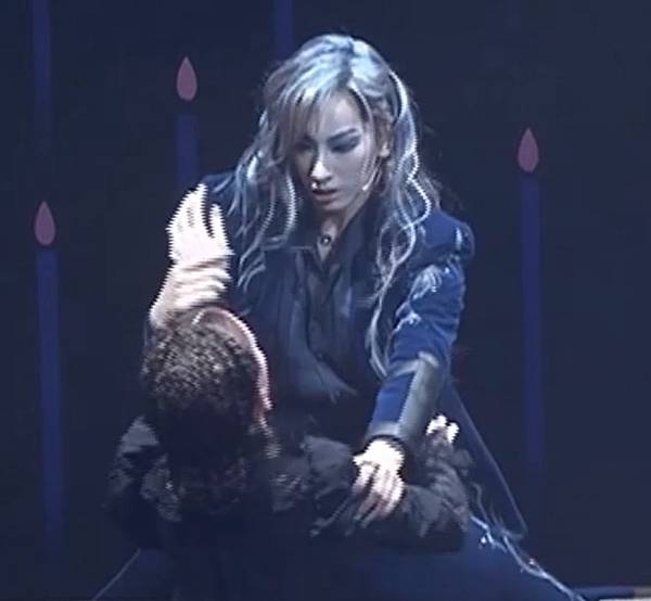 死神誘惑這段絕對值得回味再三!!Rei死神唱前半段時,輕摟著Sisi的腰,對Sisi炙熱的愛沒有讓死神表情變化太多,而是摟著腰的手驟然一縮!Sisi整個突然貼在死神側邊,可是Rei依舊面不改色往著前方唱歌,這猛力一靠相當高招!!心面不一的死神,不外顯的情緒,以瞬間強烈摟腰透露出死神為愛瘋狂!容我花癡一下:Rei每次眼神切換、每個轉身、每個甩頭….根本就是在索命!帥到天地不容好嗎!!