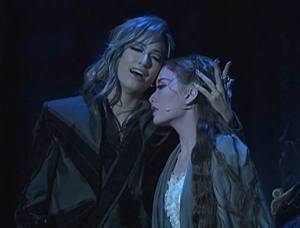另外姿月版的拍攝視角,都是以超遠景與表情特寫為主,可以看到演出者的細微表情很過癮。可是看不到演出者的肢體動作、與其他人的站位或互動細節實在可惜,例如:Rei二次見到Sisi邊唱歌邊不動聲色將Sisi猛力一靠,看得我好心動!姿月版的其實姿月有用力把Sisi朝自己胸口一抱,可是鏡頭拉太近看不到整個抱姿,隨著日新月異,日後收錄技術會越來越好吧,如同「蒼之亂」將舞台劇電影化,是現場演出又有電影的取鏡就太棒了!