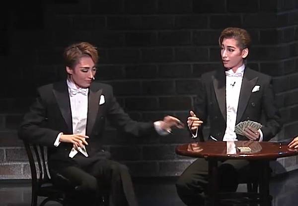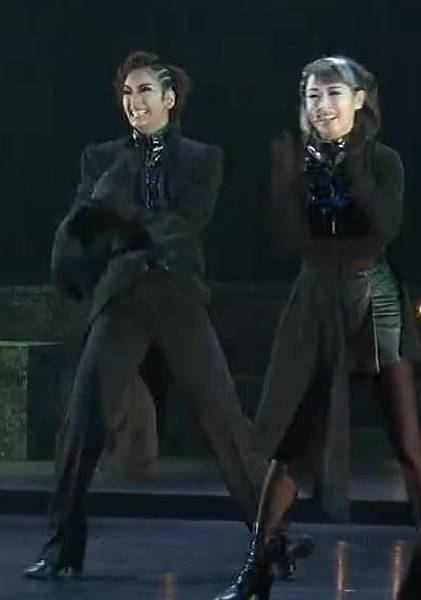 從Mr.Swing這個秀我開始注意稻葉太地老師設計的秀,他喜歡西裝群舞、銀橋西裝群舞,那一段非常好看,花組群舞速度之快、動作之俐落,舞之花絕非浪得虛名。頭目身邊的男役們一字排開, 跳一段舞之後就會換下一批男役一字排開,到第三輪的時候,由Rei、Maiti各自站在頭目兩側,是下級生裡被重視的兩人了。