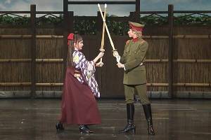 這部劇有很多武打戲,紅緒與少尉的武打,或是紅緒醉酒的武打,訪談中,Hana提到Rei總是跟她稽古倒很晚,Rei很有耐心的一步步教她武打動作,經過苦練是值得的,他們的對打真的很順、很逼真!!