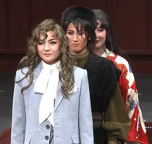 雙人舞兩人就是穿著結婚禮服共舞,延續劇情表示後來結婚了,可能大正時代的婚紗款式是那樣吧,我覺得比起戲中的服裝,那婚紗不夠好看,但那是可以忽略的。重點是兩人的感覺真的是發自內心的甜蜜,Hana從後面抱住Rei的時候,Rei那一笑非常真誠,不像是為了表演給大家看而笑,而是他真的當下很開心而笑的。這是Rei的舞台很寶貴的特點,感覺他是真的當下很開心、很有感觸的有感而發。