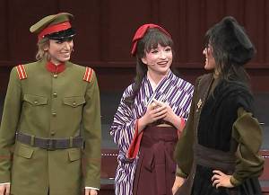 Rei準備要結束敬禮的時橫,突然Maiti衝出來打斷Rei,「等一下!」,大家嚇了一跳!Maiti說:「少尉~~」,大家就笑出來了,「也請少尉說出愛的話語吧」,全場鼓譟了起來,Rei乾笑著「好啊!你竟然…」,在寶塚的舞台上沒有人敢衝出來這樣要求主演的,因為Maiti是Rei的同期,才敢這樣玩,真的非常有趣!!Rei就對著台下深情的說出:「最喜歡大家了,從很早以前開始」附加wink,全場轟動啊!!!氣氛熱到最高點!!