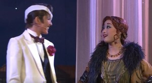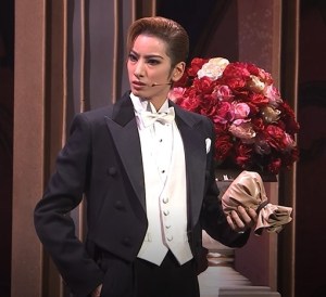 即興:另一場104期的天城,托起輝月貴婦的下巴「是的,夫人」,輝月貴婦一驚:「喔~你不是我的菜」趕快溜了!被花男嚇得的不要不要的。(以上謝謝網友堤供的repo)