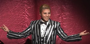 柚香Jerry在倫敦上場演出之前由主持人為客席介紹即將登台的巨星