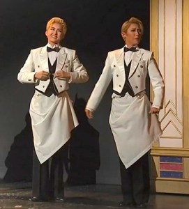 下半場系月雪羽是威尼斯飯店的服務生,當柚香問她有沒有看到小栗子Madge,系月扮演義大利籍服務生聽不懂柚香的話,比手畫腳了一番。拿到柚香Jerry的小費之後,還來個即興用外國腔調說:哇!這位施主真是女性殺手啊!太帥了!