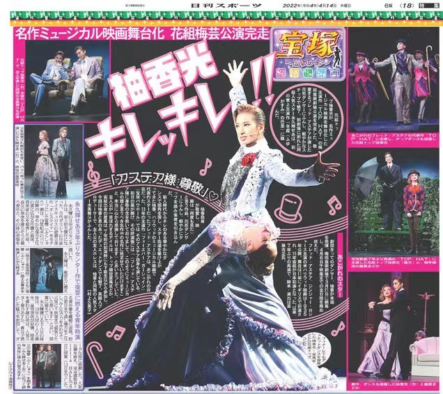 柚香在媒體訪談時提過:以前會把演、歌、舞分開來看,TOP HAT之後,他發現這是一體的,因為這部劇的劇情融在舞裡,所以不能用以往的觀點思考努力的方向。還是阿爾泰斯Astaire大師在天之靈有給他啟發呢?總覺得他一下子躍進好大一步啊!!