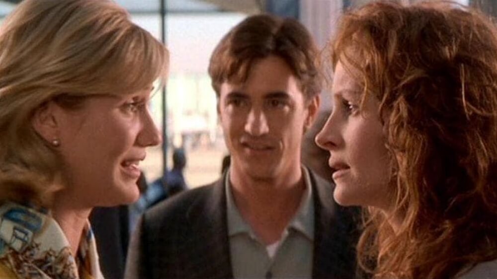 三角戀曲也有幽默版的,1997電影新娘不是我My Best Friend’s Wedding,卡麥蓉狄亞Cameron Diaz的天然呆化解了茱莉亞羅勃茲Julia Roberts的種種逆襲,最後與男主角成婚了。(鴛鴦歌合戰就是這種歡喜走向了吧,好期待!)