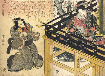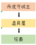 丹波守城主輝輝在早朝開會時,展示他的新寶物「初音之鼓」、「茶碗」、「青葉之笛」。過一陣子,這些古物就在道具屋(古董店),最後這些古物會出現在狂斎和海的家,古董品的流向從最高階族群到商人之手、最後到庶民手上。所以丹波守城主到狂斎的家,對那些古物沒有多看一眼,都是他之前玩膩了、淘汰掉的。