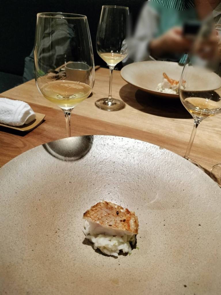 通常用餐搭配的是一種飲品,在這裡不是,一道菜搭配一種酒,那是經過設計的搭配,每一杯酒的味道搭配的就是當下的那道菜,要盡量在下一道菜出現之前,喝完手中的那杯酒。我很少喝酒,酒喝得慢,第一次用餐時我的位子好幾杯沒喝完的酒,第二次用餐時我與侍酒師說我的酒少一點,這樣就剛剛好,可以喝得完。