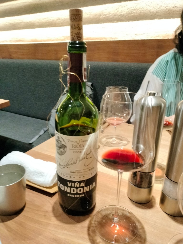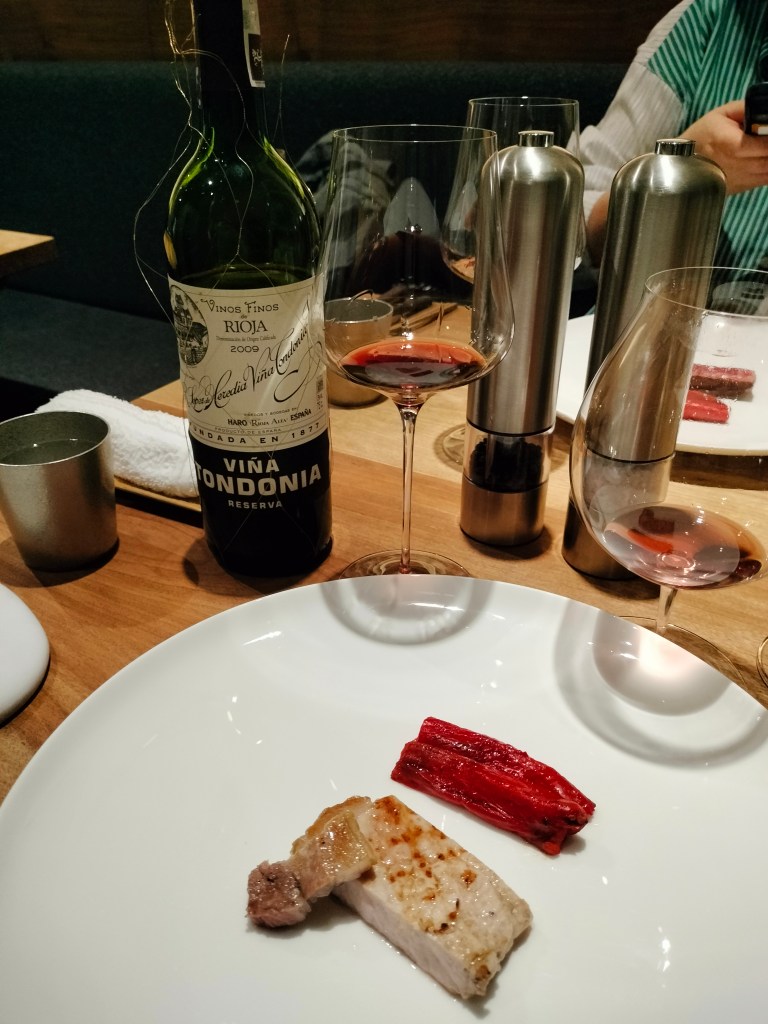 淡路的洋蔥佐豬肉,搭配的是Rioja紅酒。另外Joyce吃的是熊本的赤牛,需要熟成兩個月。