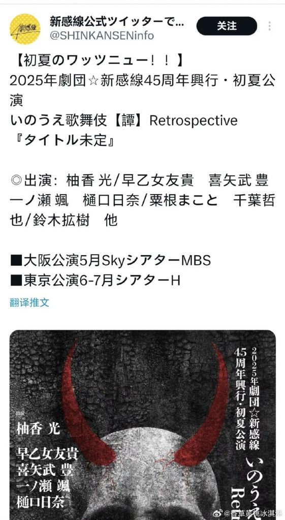 初夏公演では、“いのうえ歌舞伎【譚】Retrospective”を冠し、青木豪による作劇、いのうえひでのりによる演出の舞台作品を上演。出演者には今年5月に宝塚歌劇団を退団した柚香光をはじめ、早乙女友貴、喜矢武豊、一ノ瀬颯、樋口日奈、粟根まこと、千葉哲也、鈴木拡樹らが名を連ねる