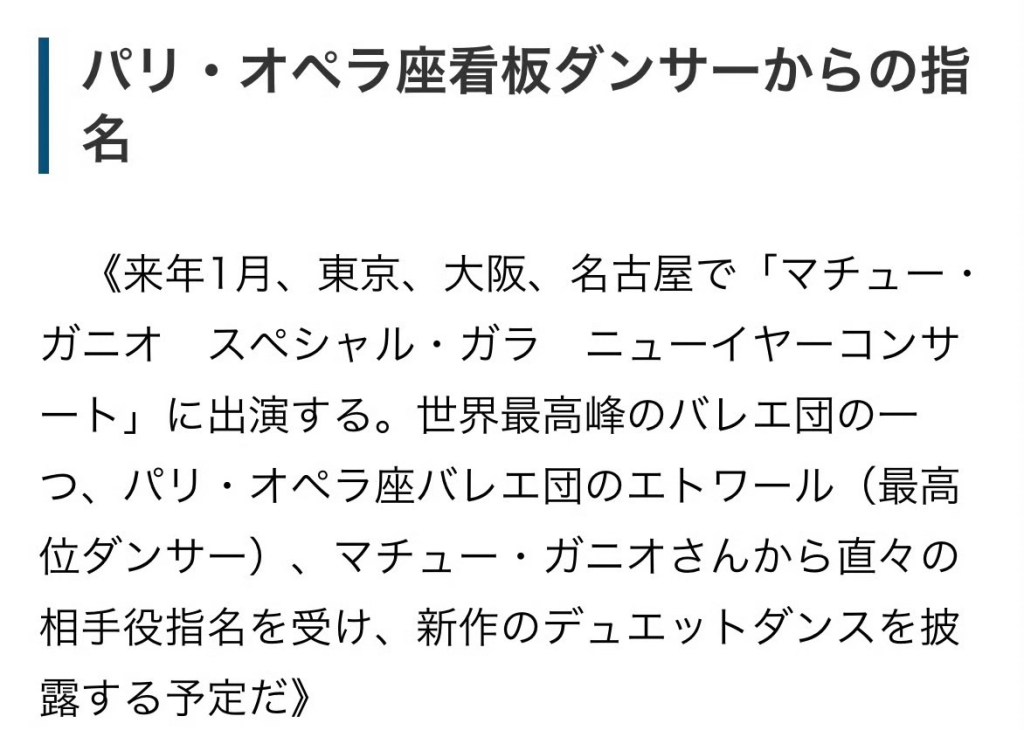 巴黎芭蕾舞蹈團邀請柚香光在新的公演中共同演出