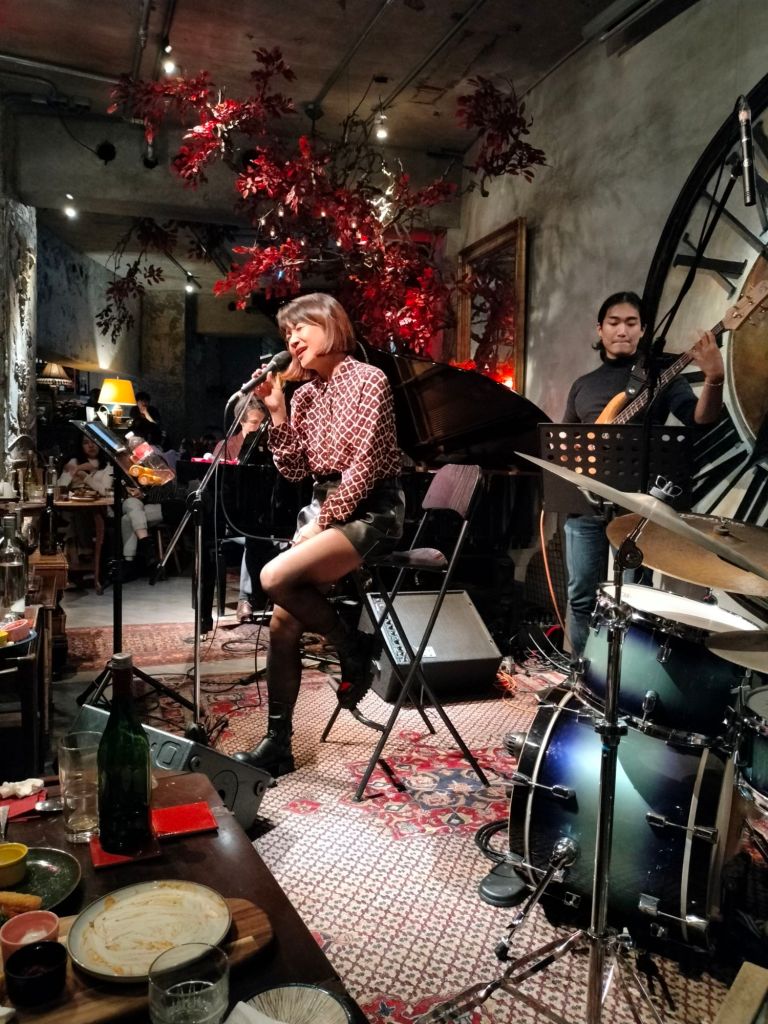 今晚由來自曼谷的爵士歌手與三位樂手演出,這位歌手自我介紹時,覺得她的名字真好聽!
