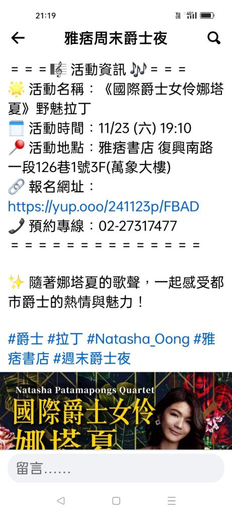 除了爵士歌曲,也聽到很多首我喜歡的Bassanova 歌曲!今晚真是收穫滿滿啊!💯