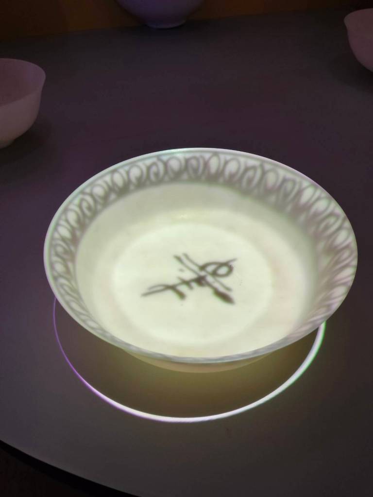 等晚上回到家後,不禁回想起圖中左上的那個,是四個碗當中最樸素的,白色的底,淺淺細細髮絲般的紋路,那個時代會想到要這樣設計、不是大鳴大放的艷麗色彩,美學發展到深厚地步了啊!開始好奇,是哪個時代的,有名稱嗎?