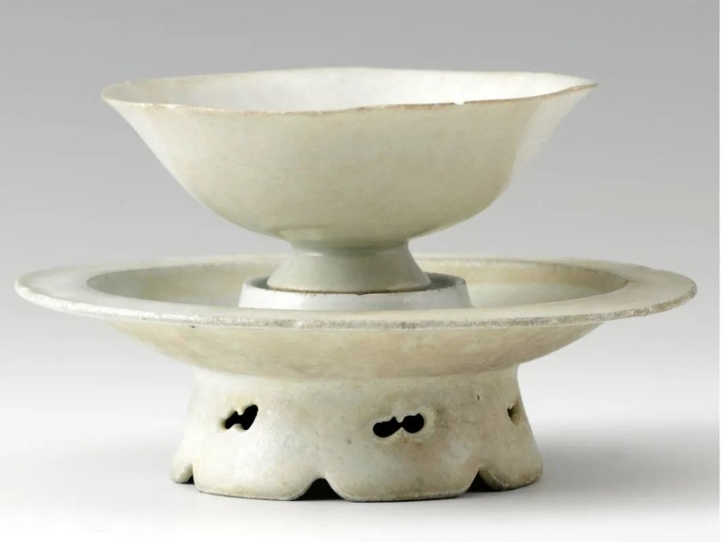 後來找到類似款,可能是"米色青瓷葵口碗“、"南宋青瓷葵口茶盞“。