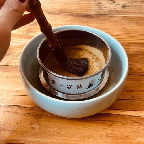 把磨好的茶粉細末裝到容器裡
