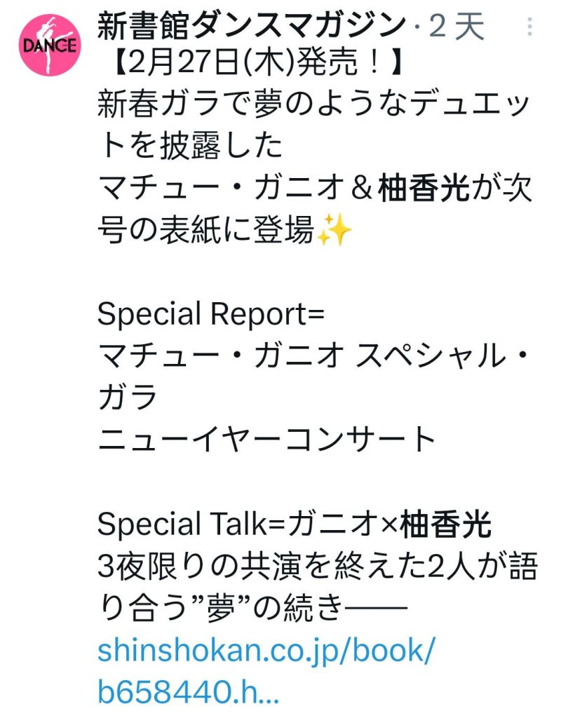 日飯在推特上說,這家雜誌已經有41年雜誌封面人物都是芭蕾專業舞者,柚香光的舞蹈領域與芭蕾是相關的,很難得能成為封面人物👍