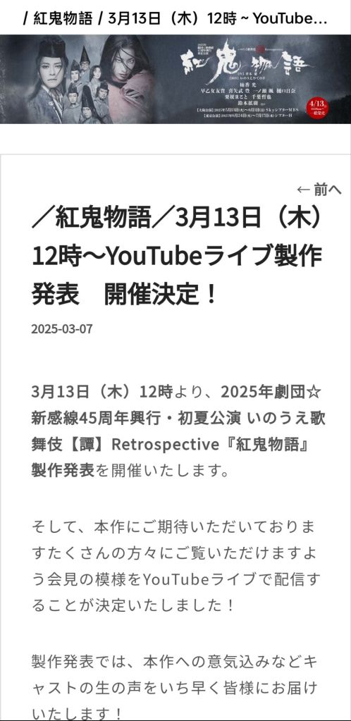 這是柚香光第一次以主演身份出席外部劇團的發布會。好期待💕