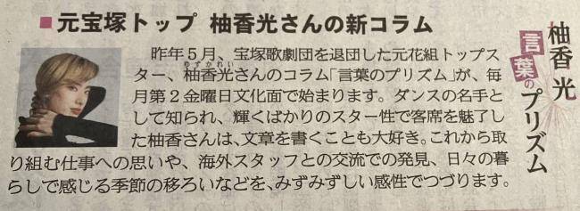 柚香光在產經新聞文化版面有連載的專欄了!!