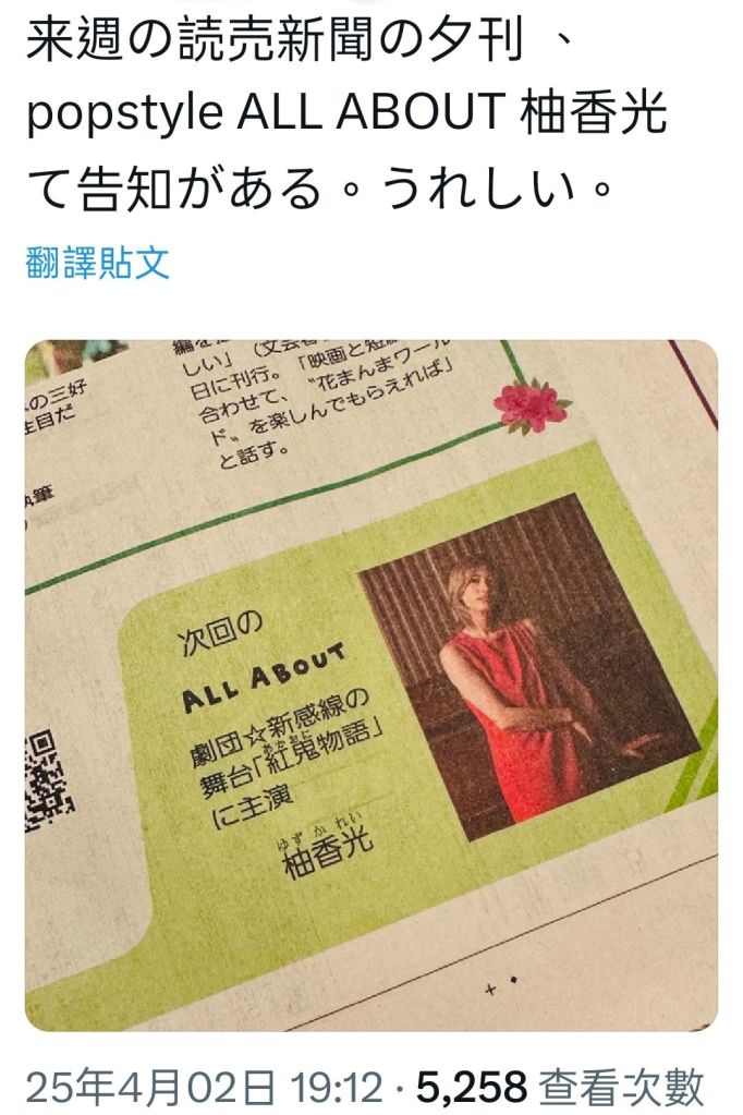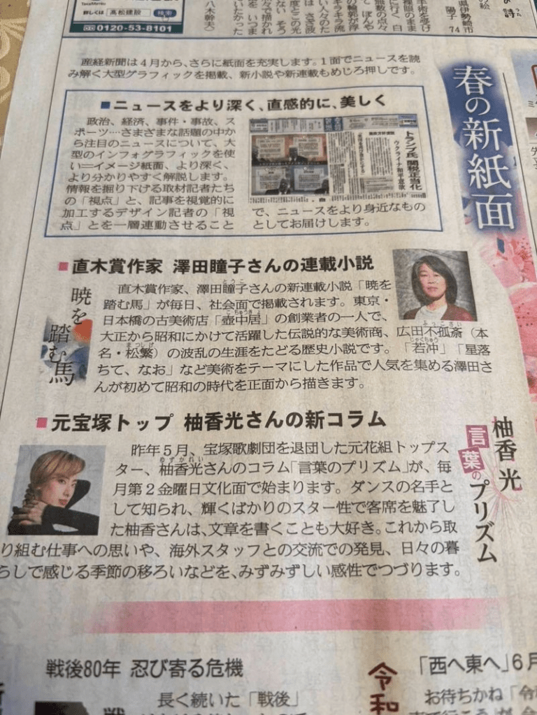 2025年4月11日起,每月第2周周五 文化版面 連載柚香光的專欄「言葉のプリズム」