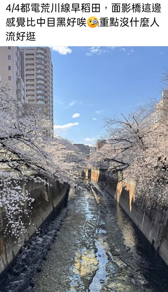 網路上有人分享2025京都的櫻花,(下圖取自網路),我感覺中目黑與京都河畔旁的櫻花樣貌蠻像的。