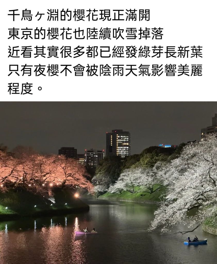 網路上也有人分享夜櫻的照片,真的,夜櫻就算是陰天,天空也是黑的,還是可以很美的。