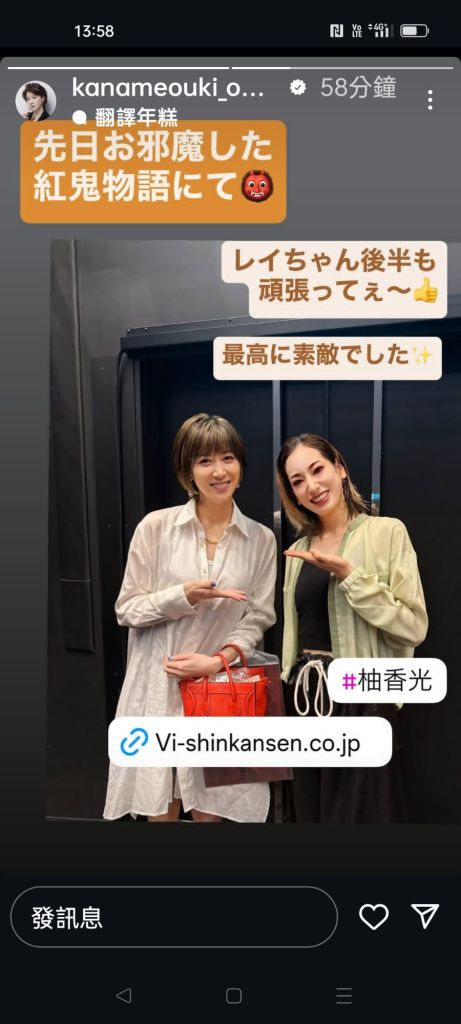 寶塚元宙組TOP star 凰稀かなめ 今天去Theater H 看了紅鬼物語。