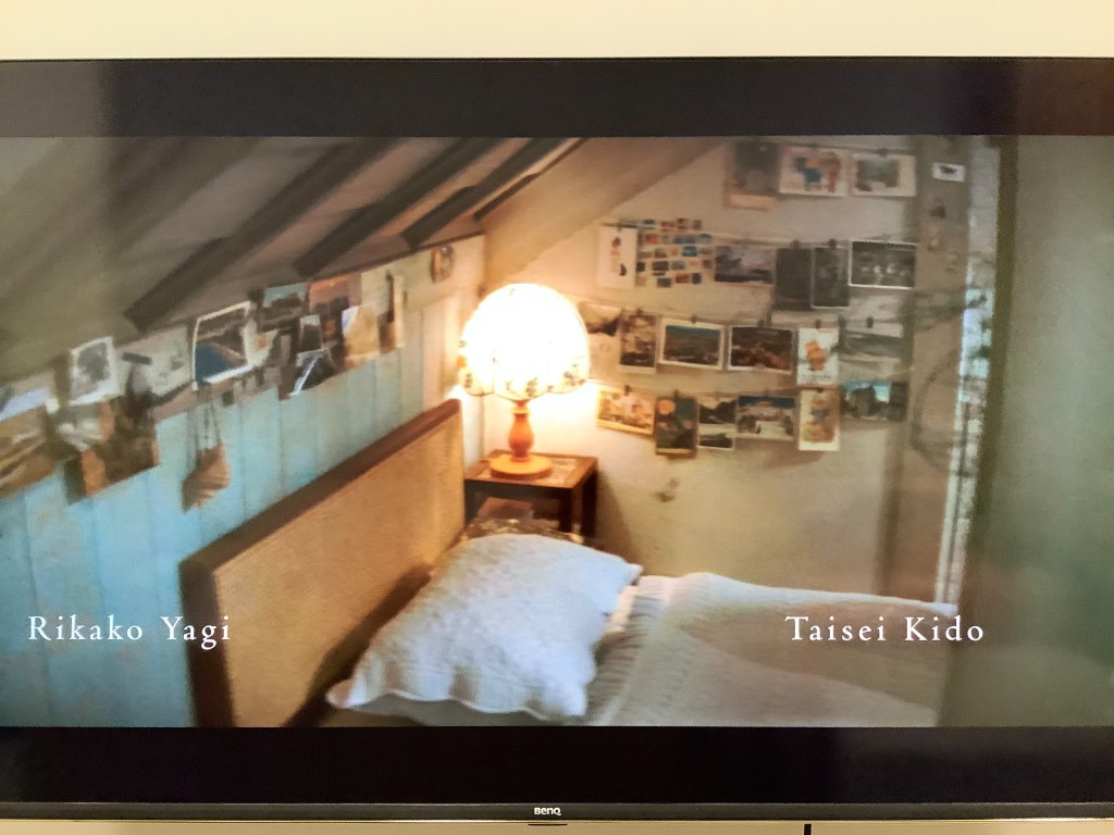 也英(滿島光)的娘家,我非常非常喜歡,三角屋頂的平房,淺藍色與白色,根本是繪本裡的西式童話小屋。也英的房間在樓上,是三角屋頂下的閣樓,房裡、屋裡非常溫馨,淺藍色的牆壁、暖色調的西式桌燈。