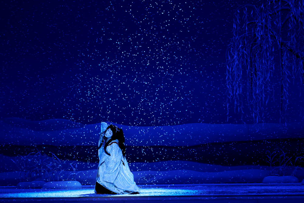 劇末喜久雄獲得國寶的公演「鷺娘」,暗暗冷的色調,覺得陰森,很接近喜久雄嚮往的境界:「可怕,但是很美」,寂寥悵惘、天地間孤身一人,空的境界,他到達了藝術的頂點。