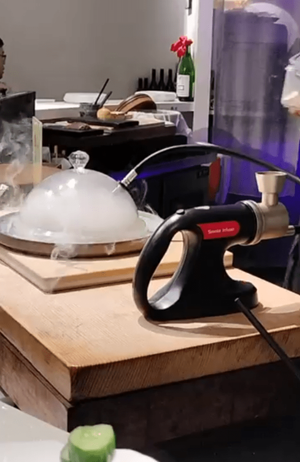 器皿因為低溫食材在常溫形成的水霧而增添了更多的美感。