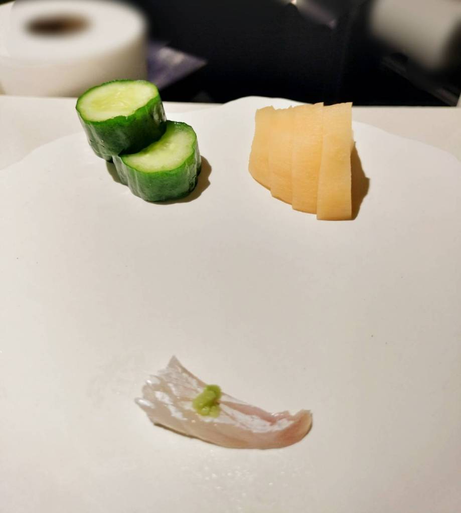 感覺廚師的上菜順序,生魚片部分是由淺色肉質的魚到深色的。鯛魚、白甘、鮪魚依序上菜。