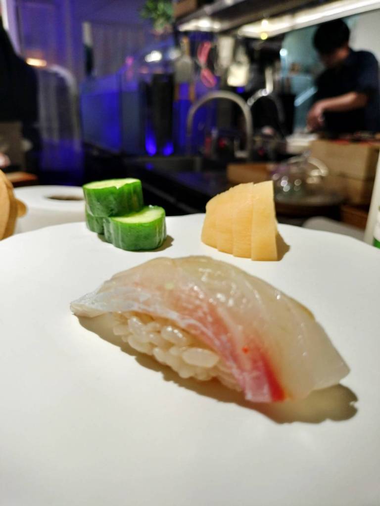 後來才發現,蜜柑鯛是無菜單料理餐廳常出現的料理。右圖是蜜柑鯛的腹部,很好吃。