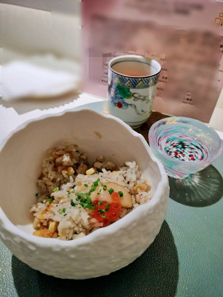 13.台東有機水果玉米天婦羅、北海道干貝釜飯