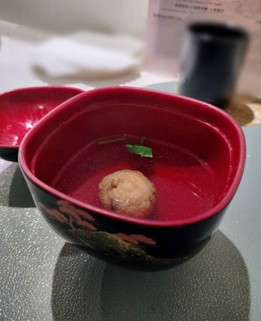 第一道前菜,就已經讓我驚艷了!豆腐的口感非常非常特別,像是介於蒟蒻與豆腐之間,沒有蒟蒻那麼硬,又沒有豆腐那麼軟,非常神奇的口感,又很有味道。