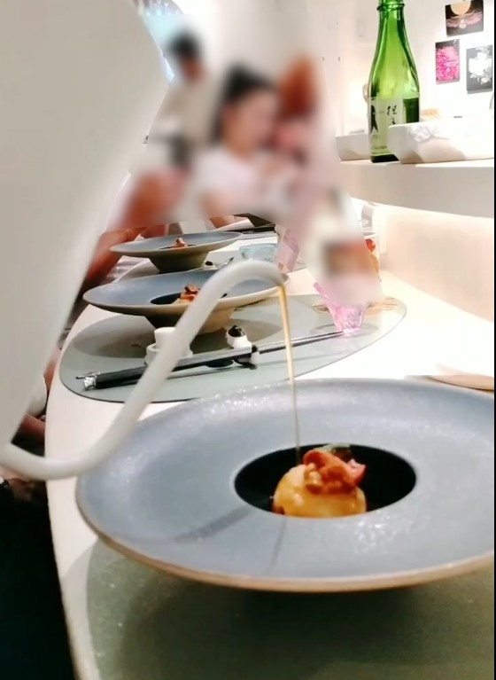 廚師在料理手法上有新的變化,料理手法我不太會說明,我最有印象的是最後在魚身上灑上金箔,哇!!繽紛又夢幻,視覺刺激延伸了美感與想像,這道菜也適合特定節日,例如:結婚紀念日、求婚、聖誕節…