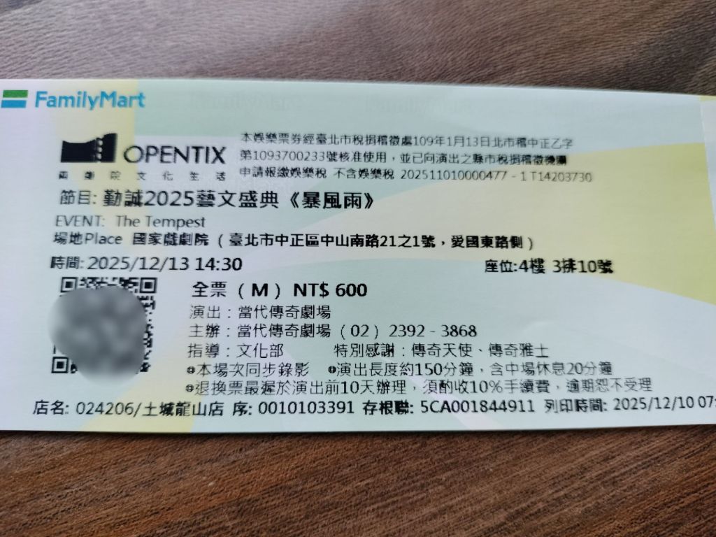 國家戲劇院的座位安排很好,我這排後一排的座位差非常高,不用擔心自己移動身軀時會影響正後面的觀眾