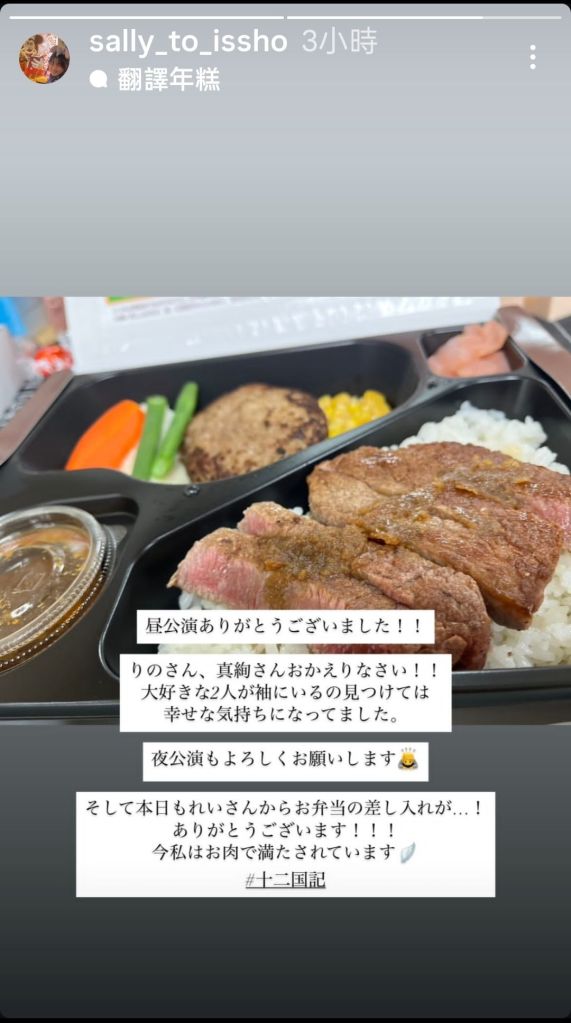2025-12-162025-12-24 Lilian 20251216 十二國記記事 柚香光在今天的兩場公演之間休息空檔招待共演人員們便當 是美濃吉的便當,感覺很好吃,聽友人說百貨公司地下街有再賣,好想吃吃看啊😃 12/24 送的便當 這是六太的ig動態 光送的便當肉很多,演員們能好好補充體力👍 The End 分享此文: 按一下即可分享至 X(在新視窗中開啟) X 按一下以分享至 Facebook(在新視窗中開啟) Facebook 喜歡 正在載入... 相關