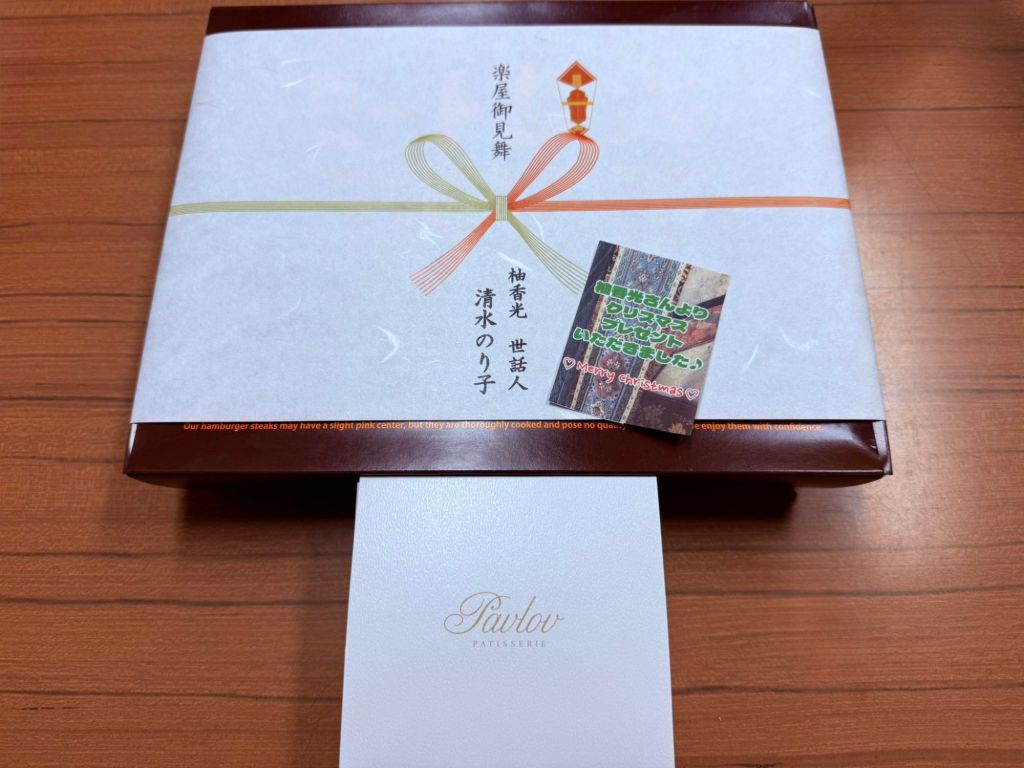 主演柚香光請共演同仁、工作人員吃便當另外還有甜點。