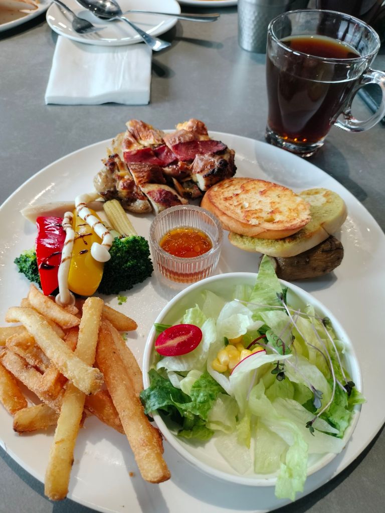 報到之後,早餐是豬排三明治、熱紅茶,沙拉醬很特別,好好吃。