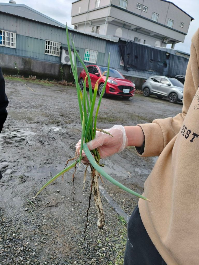 所幸拔蔥過程中沒有滑倒,也順利拔了整棵蔥。