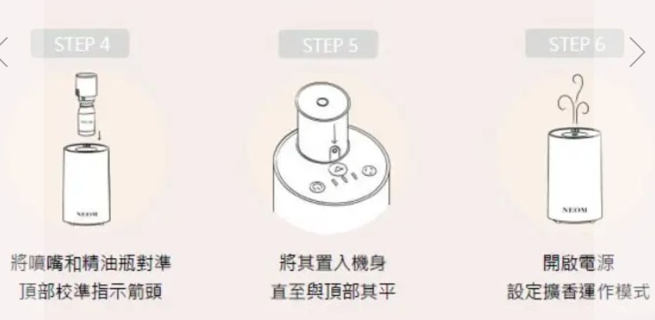 機身只要與精油瓶合體,無腦開啟電源就能擴香,不需要加熱或是加水,太方便了!!