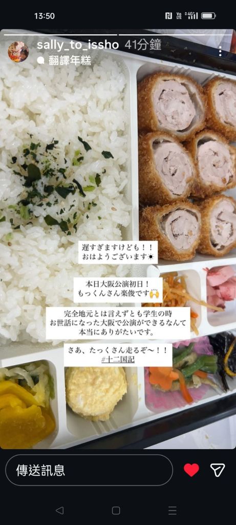 2026-01-172026-01-17 Lilian 20260117 十二國記 大阪公演初日 大阪公演在梅田藝術劇場 2026年1月17日展開 阪急梅田商場還有十二國記蓬山的場景,有的像山水畫,現場看一定很好看! #十二国記 大阪公演、明後日から☺️✨休憩は25分に戻ります、っと✍️ https://t.co/Jv6JCcFTfc— 小林風花 Sayaka Kobayashi (@sayakanote) January 15, 2026 噂の阪急梅田の蓬莱、私も見に行ってました。予想以上のビックサイズで迫力ありました〜!!他の作品も全部大きくて壮大で見応えありました! pic.twitter.com/pGqIXlKoNP— うちのみかろ@ミュ済㊗️らくつんよこちゃんワンツーフィニッシュを祝い続ける (@mikaron12) January 14, 2026 扮演延麒六太的演員,上傳了大阪初日的餐盒,感覺很好吃! The End 分享此文: 分享到 X(在新視窗中開啟) X 分享到 Facebook(在新視窗中開啟) Facebook 喜歡 正在載入... 相關