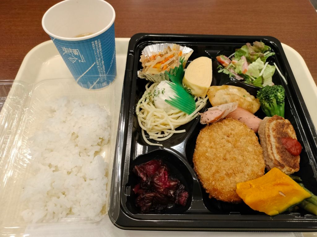 東橫inn名古屋栄店最近一樓準備要整修,不在一樓自助式的形式用餐,改為領餐盒,有熱味噌湯、熱咖啡。餐盒的份量對女性來說可以吃很飽,飯量可以選擇,我是選少量飯。