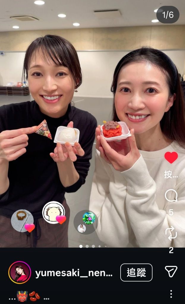十二國記公演結束後,馬上就是伊莉莎白的稽古了,寶塚元雪組首席望海風斗發了限動,原來是柚香光送了節分的點心給望海。