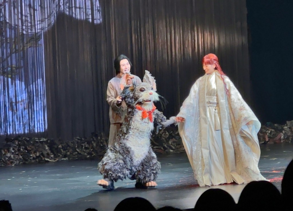 名古屋其中一場公演,設備等了好一陣子沒有再升回來,那一次柚香就先出場見景麒了,所幸後來還是有升回來的。
