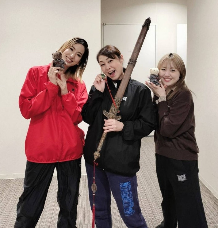 一旁的柚香手扶額頭、笑著說好可愛喔,原田則是在一旁比「繼續說」的手勢鼓勵她再講。
