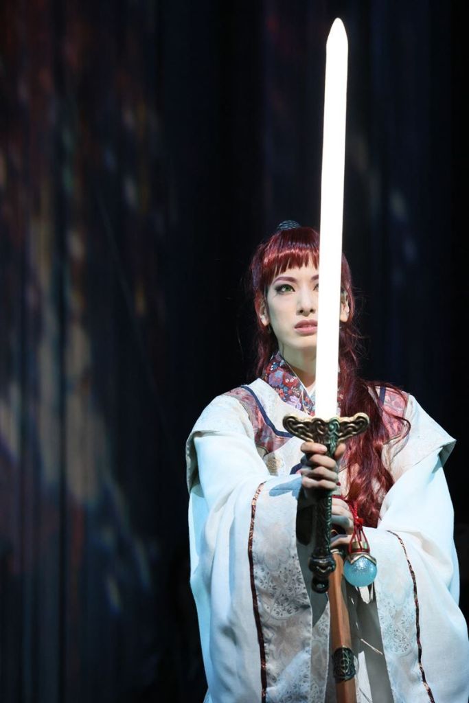 只能柚香光陽子的背影,被妖魔攻擊,她隻身一人不斷抵抗,隔著線簾都能感受到情勢危急,柚香光與加藤二重唱,聽到柚香光的歌聲好想去救她啊!