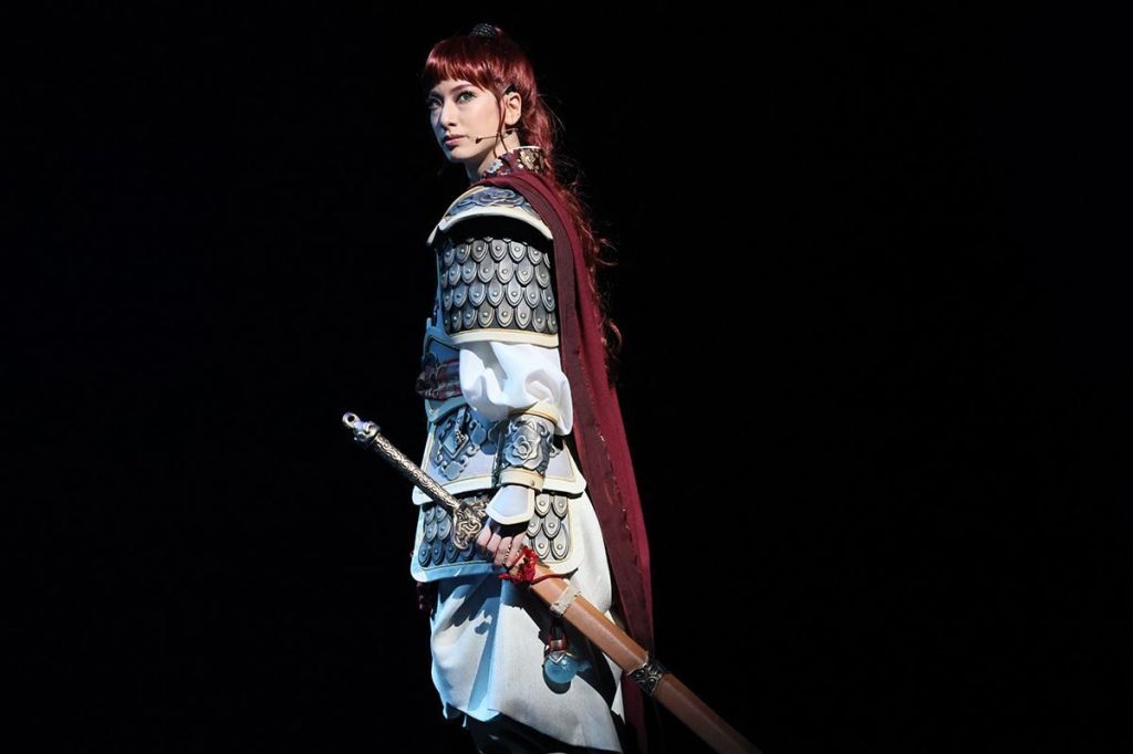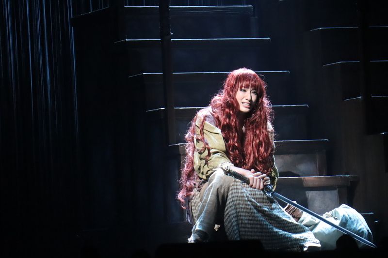 柚香光陽子憤怒不平地唱著,拿起刀砍向同學們,殺也殺不了,彷彿陰魂不散的幽靈,
