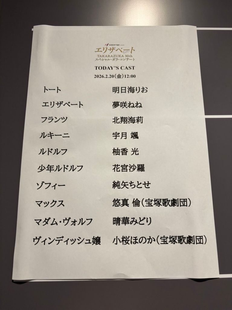 我是元花組的Asumi Rio! ! 這次的成員以前在2014年花組的有好幾個人,例如:北翔海莉與柚香光今天扮演的是Franz與Rudolf。我們現在已經不是一年365天都扮演寶塚男役娘役角色了,(現在能再一起公演真不容易),感謝大家來看我們♪